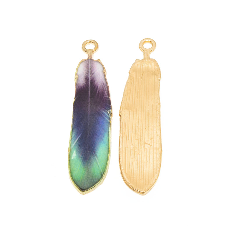 Подвеска метал. Перо разноцветное, Стойкое покрытие, 38х9 мм, Золото (POD-054746) / 1 шт