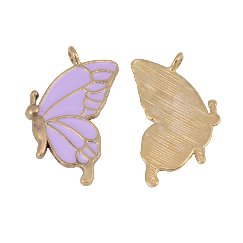 Подвеска метал. Бабочка сиреневая, 31х23 мм, Золото (POD-054999) / 1 шт