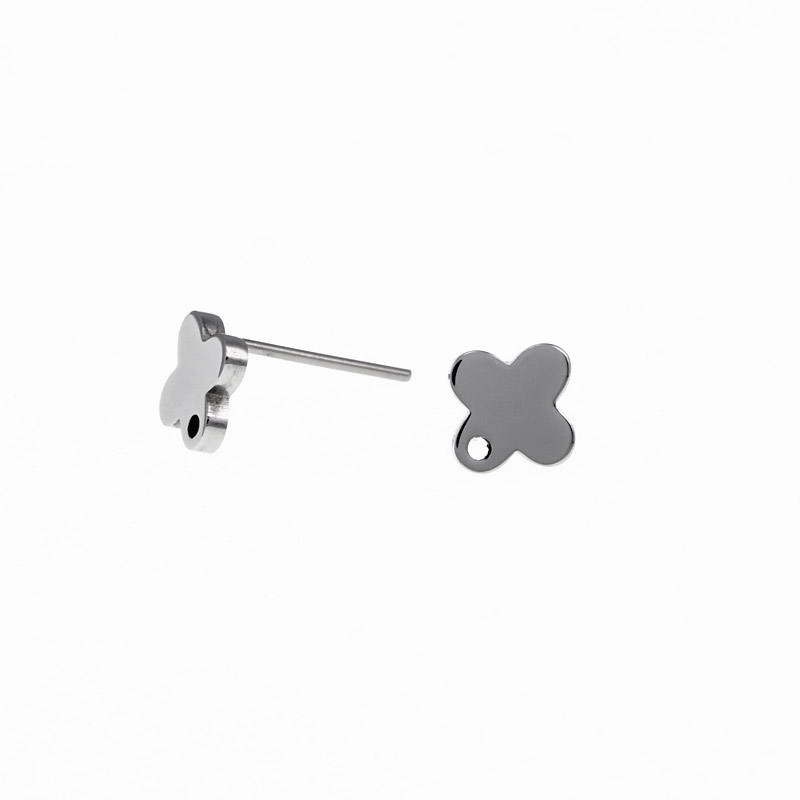 Пусеты из нерж. стали, Цветочки, 7,5х7,5х13 мм, Темное серебро (STL-055768) / 1 уп (2 шт)