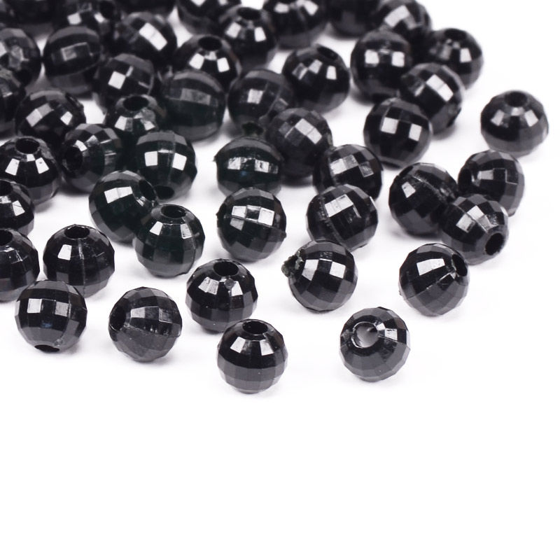 Бусины акриловые, Круглые граненые, 6 мм, Черные (BUS-056150) / 1 уп (5 г)