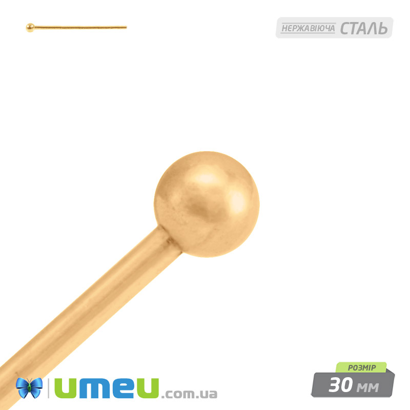 Гвоздики с шариком из нерж. стали, 30 мм, Покрытие 24 kt (STL-056231) / 1 уп (10 шт)