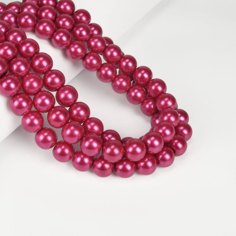 Бусины стеклянные Жемчуг, 12 мм, Малиновые, Круглые (BUS-056695) / 1 низка
