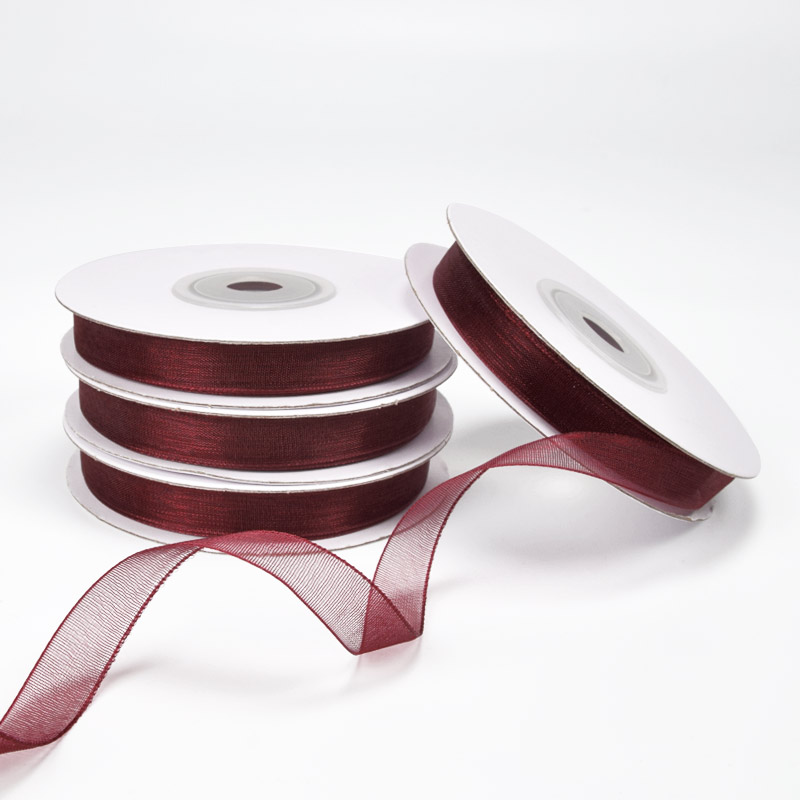 Лента из органзы, 10 мм, Бордовая (LEN-056786) / 1 моток (22 м)