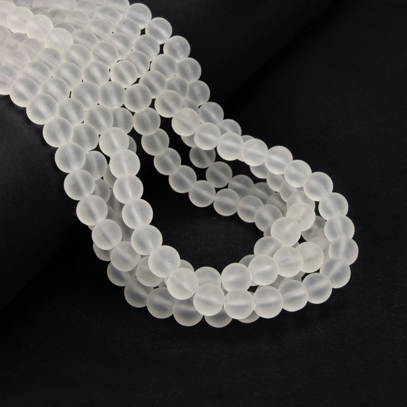 Бусины стеклянные матовые, 8 мм, Круглые, Белые (BUS-057180) / 1 низка
