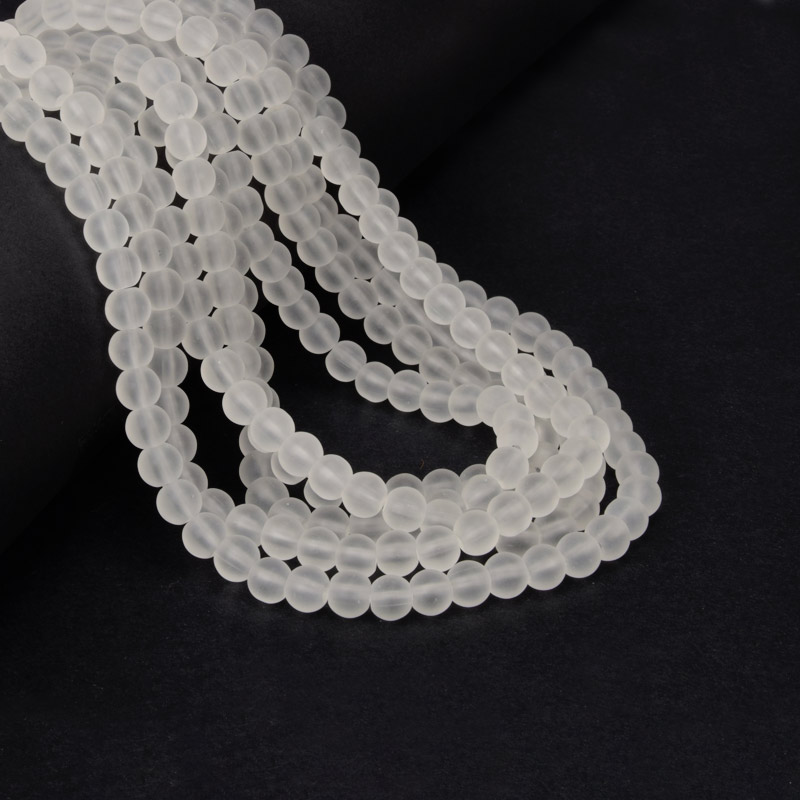 Бусины стеклянные матовые, 6 мм, Круглые, Белые (BUS-057181) / 1 низка
