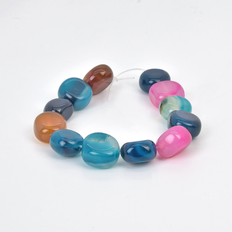 Бусины Агат разноцветный, Натур. камень, 13-16 мм, 19 см (BUS-058137) / 1 низка