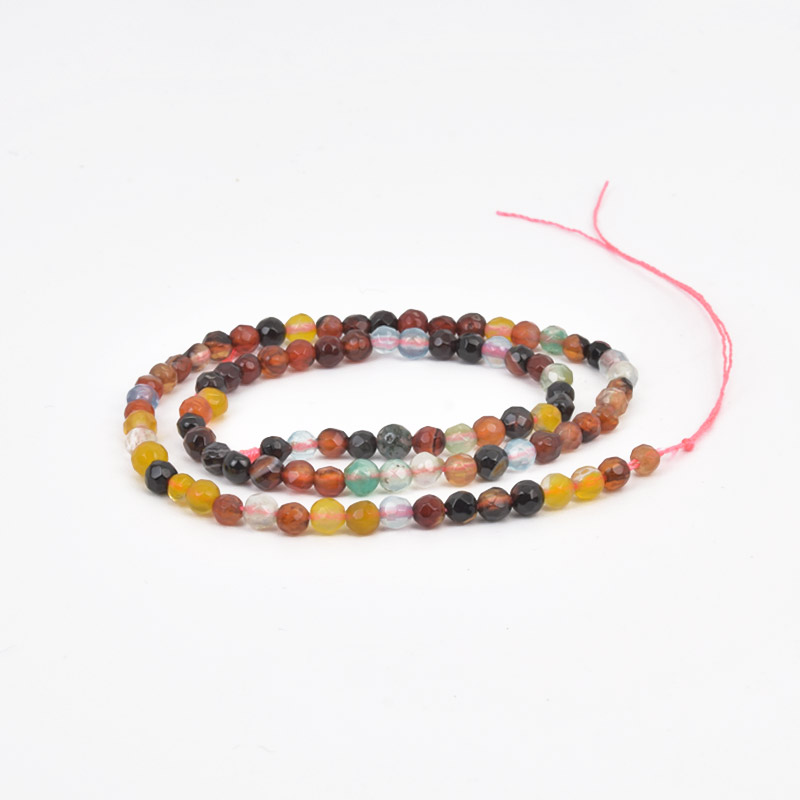 Бусины Агат разноцветный, Натур. камень, 4 мм, Круглые граненые (BUS-058189) / 1 низка