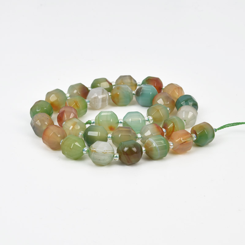 Бусины Агат зеленый, Натур. камень, 10 мм, Круглые граненые (BUS-058217) / 1 низка