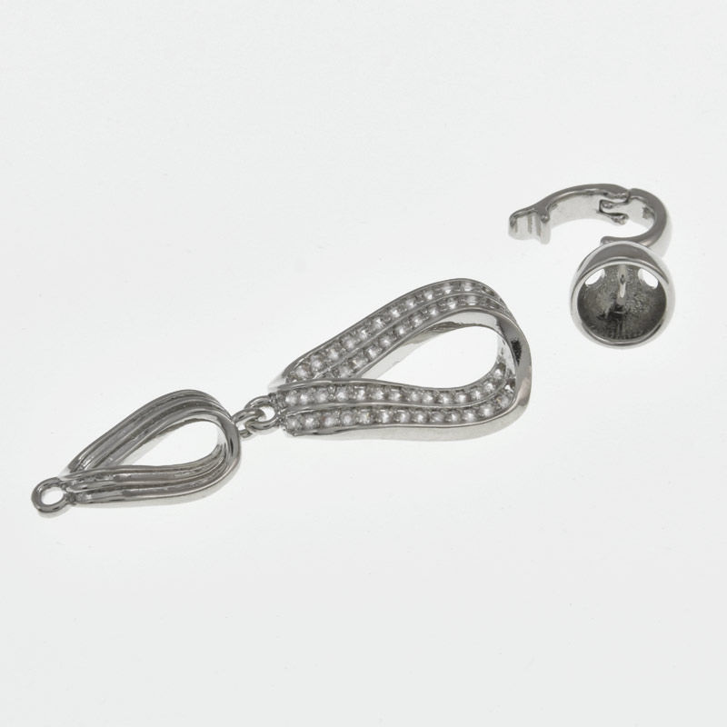 Застёжка, 44х10 мм, Латунь с покрытием Родий, Куб. цирконий (ZAM-058454) / 1 шт