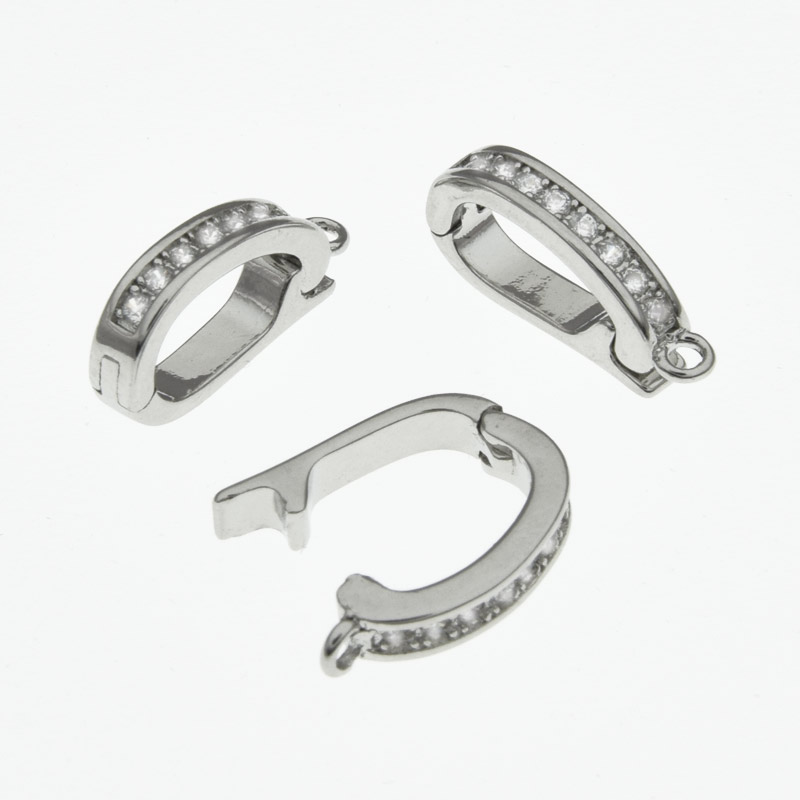 Бейл съёмный, 14х7х2,5 мм, Латунь с покрытием Родий, Куб. цирконий (OSN-058463) / 1 шт
