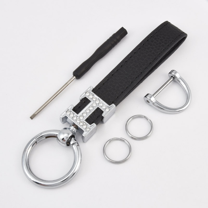 брелок с кольцом-карабином (длина брелка с кольцом 130 мм, диаметр кольца 33 мм, стразы стеклянные):
