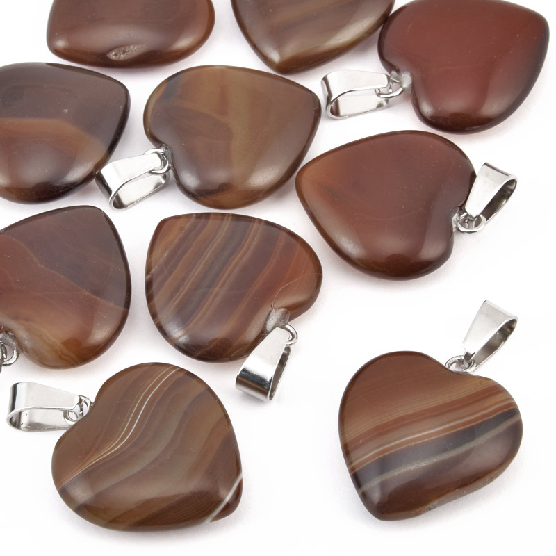 Подвеска Сердце, Натур. камень Агат коричневый, 20х20 мм (POD-058528) / 1 шт