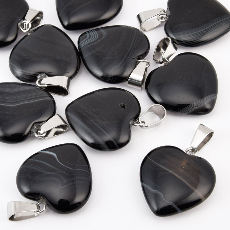 Подвеска Сердце, Натур. камень Агат черный, 20х20 мм (POD-058531) / 1 шт