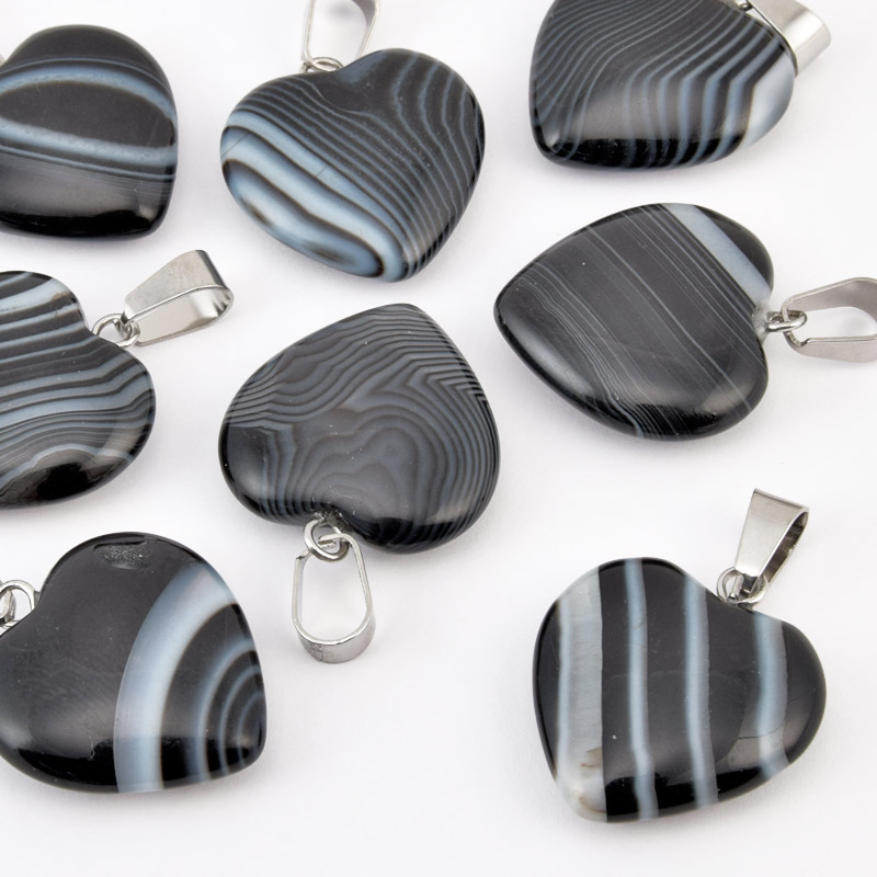 Подвеска Сердце, Натур. камень Агат черный, 20х20 мм (POD-058533) / 1 шт
