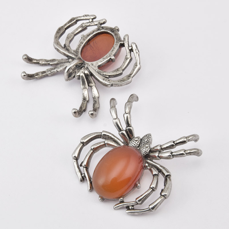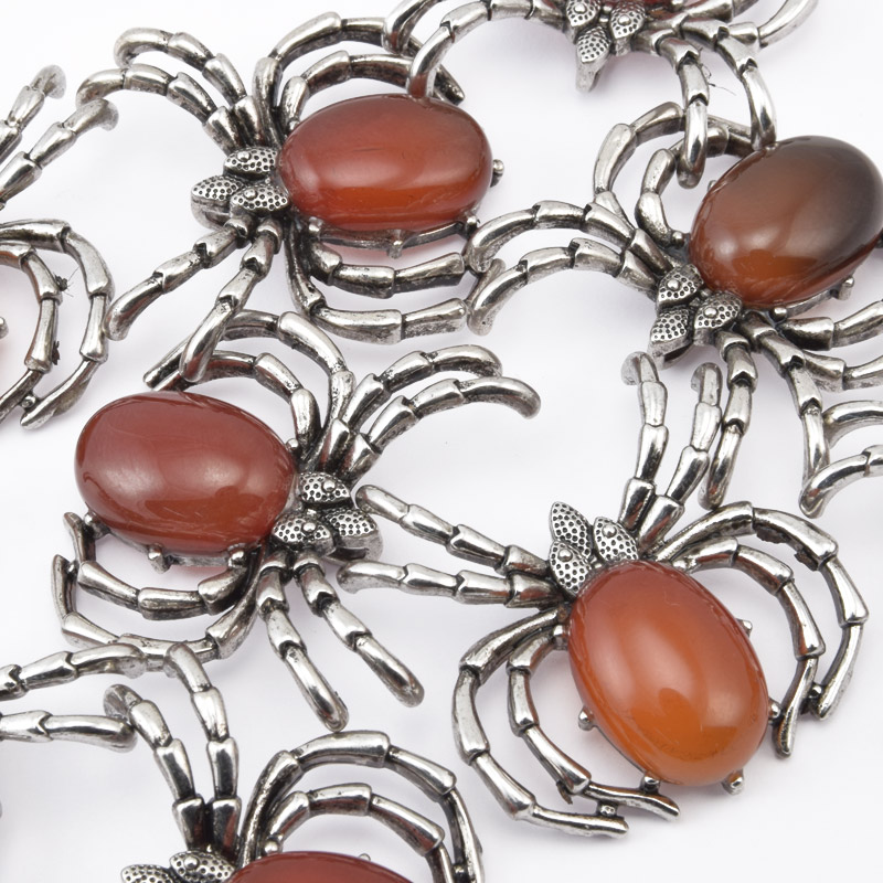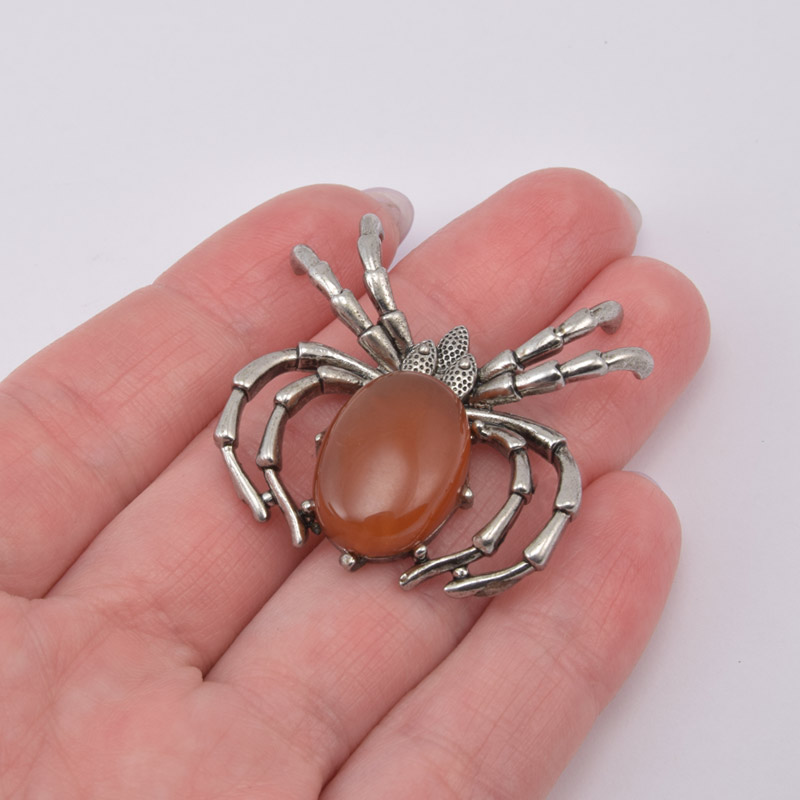Подвеска Паук, Натур. камень Сердолик, 35х35 мм, Темное серебро (POD-058577) / 1 шт