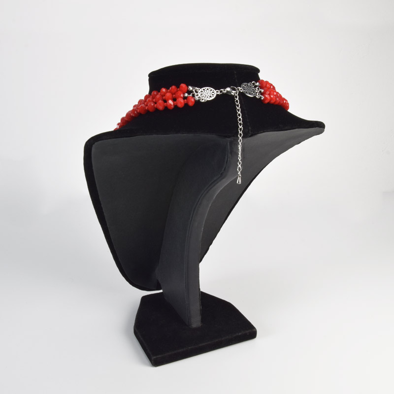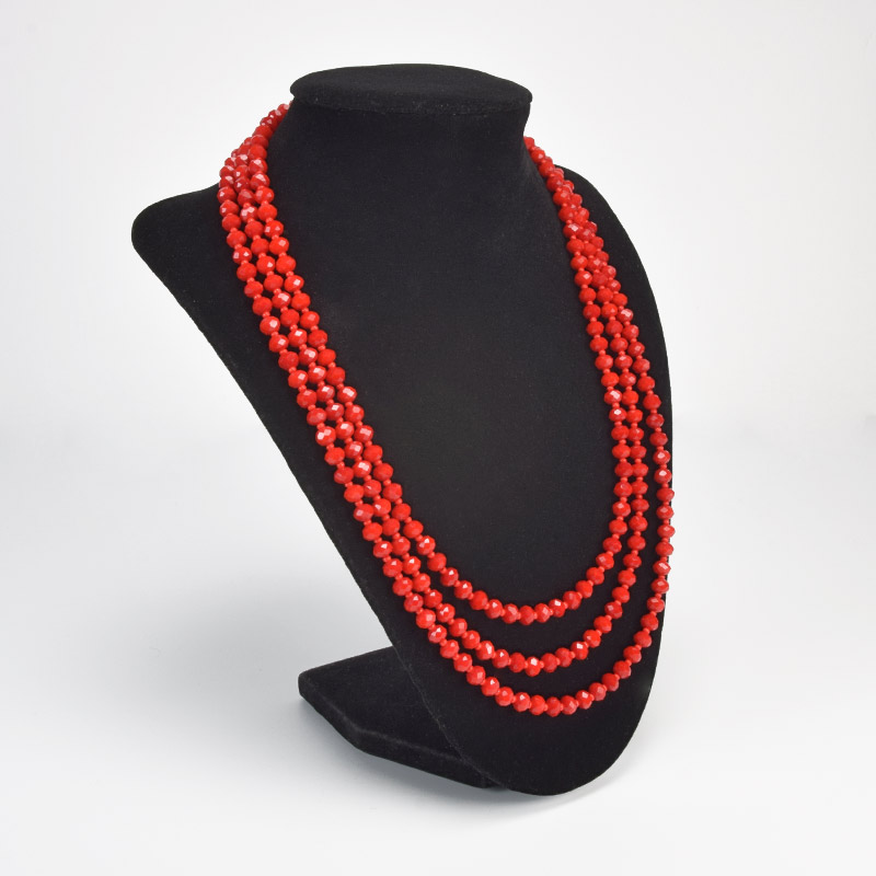 Колье красное тройное, Бусины стеклянные, 50 см (BUS-058763) / 1 низка