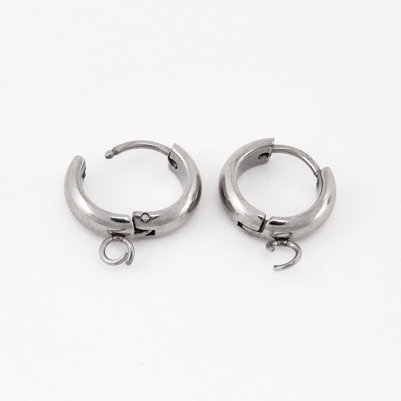 Серьги-кольца Huggie из нерж. стали, 17х13х4 мм, Темное серебро (STL-059033) / 1 уп (2 шт)