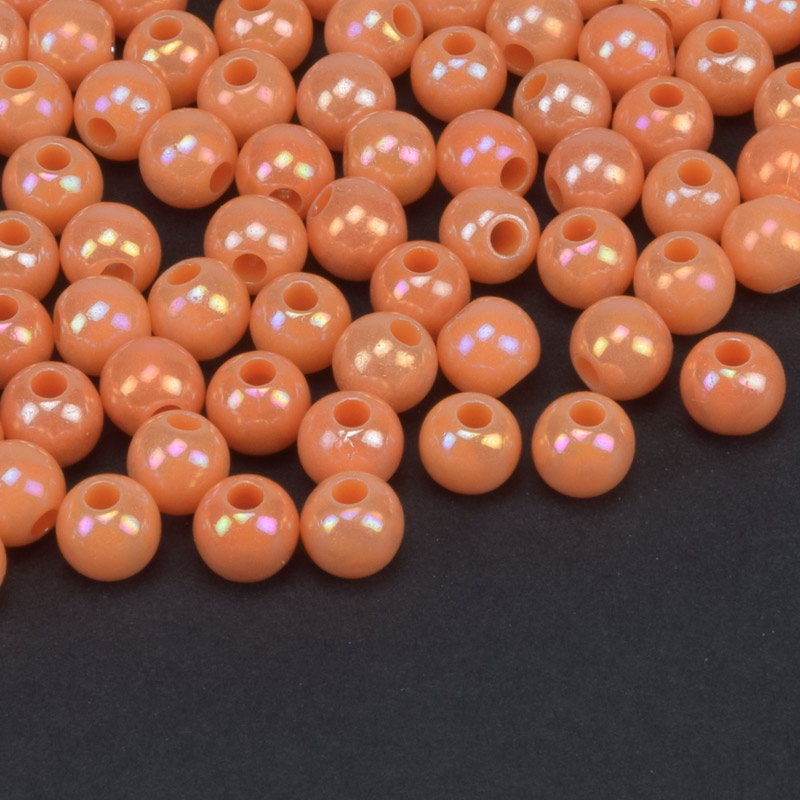 Бусины пластиковые радужные, Круглые, 6 мм, Оранжевые (BUS-059518) / 1 уп (5 г)