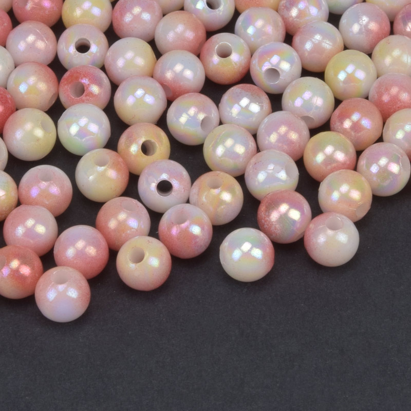 Бусины пластиковые градиентные, Круглые, 6 мм, Розово-желтые (BUS-059556) / 1 уп (5 г)