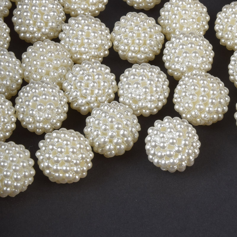 Бусины пластиковые Ежевика, Круглые Жемчуг, 14 мм, Кремовые (BUS-059621) / 1 уп (10 шт)