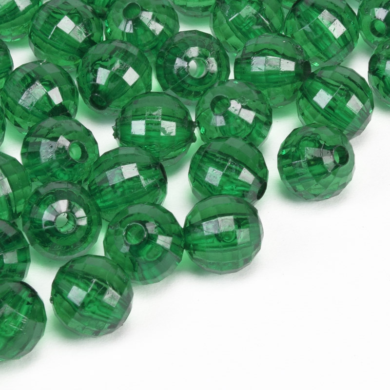 Бусины для сумок ОПТ, Акриловые, Круглые граненые, 9,5 мм, Зеленые (BUS-059776) / 1 уп (450 г)