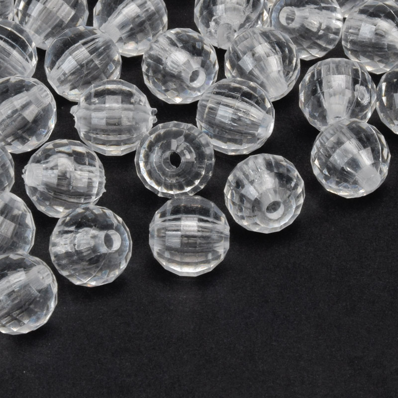 Бусины для сумок ОПТ, Акриловые, Круглые граненые, 9,5 мм, Прозрачные (BUS-059779) / 1 уп (450 г)