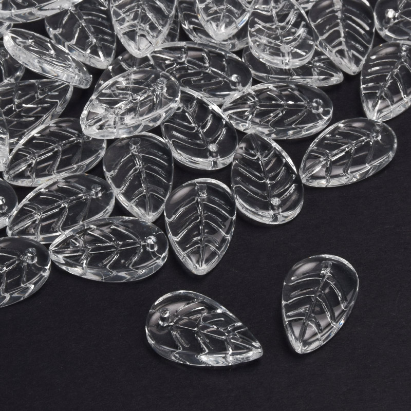 Бусины стеклянные, Листик, 18х11 мм, Прозрачные (BUS-059857) / 1 уп (10 шт)