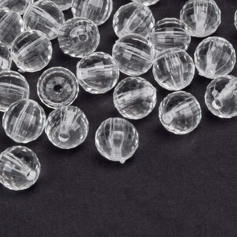 Бусины акриловые, Круглые граненые, 8 мм, Прозрачные (BUS-059877) / 1 уп (50 шт)