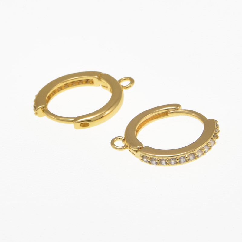 Швензы круглые, Латунь с покрытием 18 kt, Стразы куб. цирконий, 17х15х2 мм (OSN-059997) / 1 уп (2 шт)