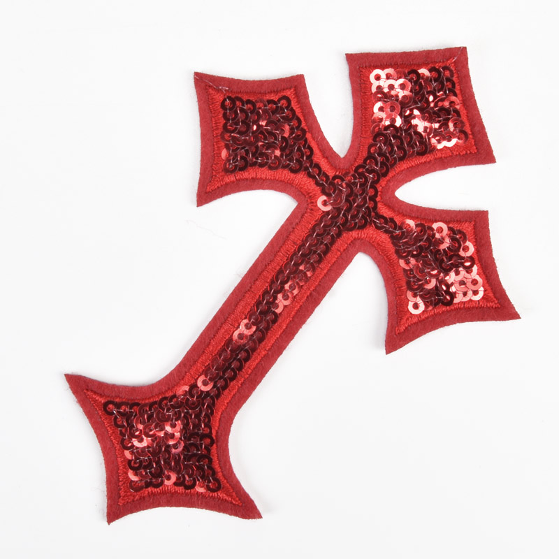 Термоаппликация с паетками, Крест, 11х7,5 см, Красная (APL-060042) / 1 шт