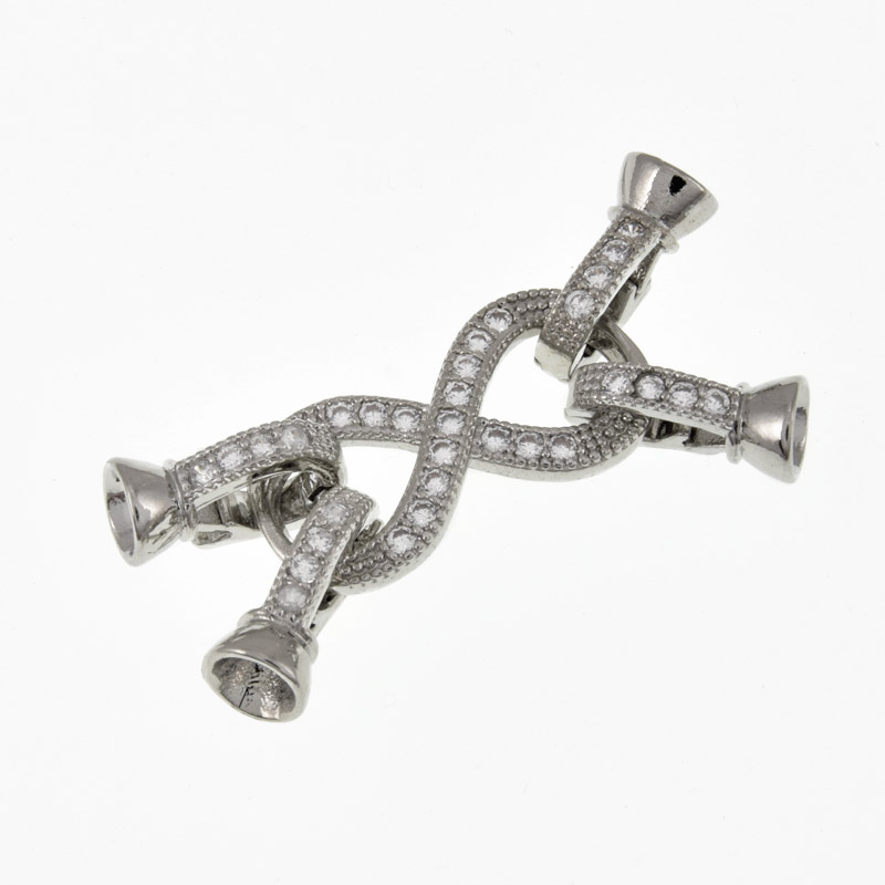 Застёжка, 36х11 мм, Латунь с покрытием Родий, Куб. цирконий (ZAM-060852) / 1 шт