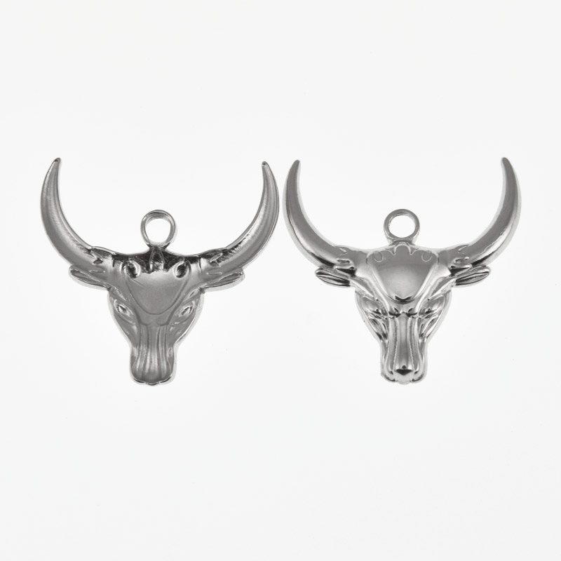 Подвеска из нерж. стали Голова быка, 25х24 мм, Темное серебро (STL-061331) / 1 шт