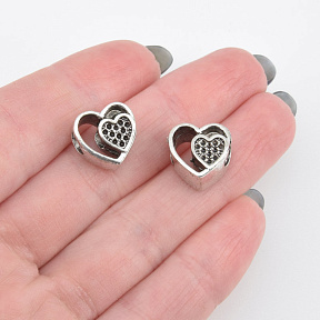 Бусины мет. Сердце, 11х11х8 мм, Античное серебро (BUS-006477)