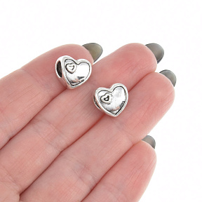 Бусины мет. Сердце, 11х10х10 мм, Античное серебро (BUS-005744)