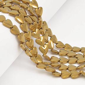 Бусины Гематит, Нат. камень, Сердце, 6х6х3 мм, С покрытием, Золотистые (BUS-057815)