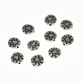Бусины мет. Круглые плоские с сердечками, 9х3 мм, Античное серебро (BUS-039080)