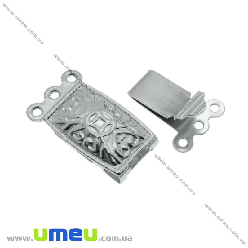 Замок-защіпка на 3 нитки з нержавіючої сталі, 19,5х14 мм, Темне срібло (STL-020462)