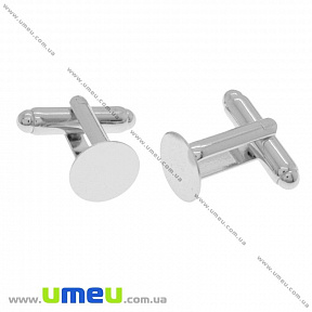 Основа для запонок під кабошон 14 мм, 16х18 мм, Світле срібло (OSN-031759)