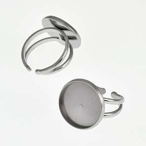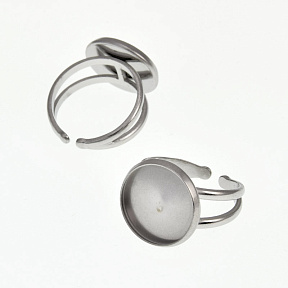 Кільце з нерж. сталі під кабошон 16 мм, Темне срібло (OSN-060537)