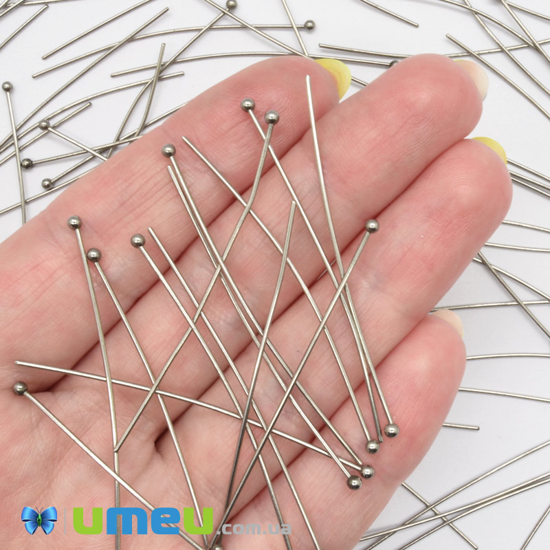 У 5 г приблизно 43-44 шт.Гвоздики з кулькою, Темне срібло, 50 мм, 0,6 мм (PIN-053021) / 1 уп (5 г)PIN-05302131.00₴ / уп (5 г) -