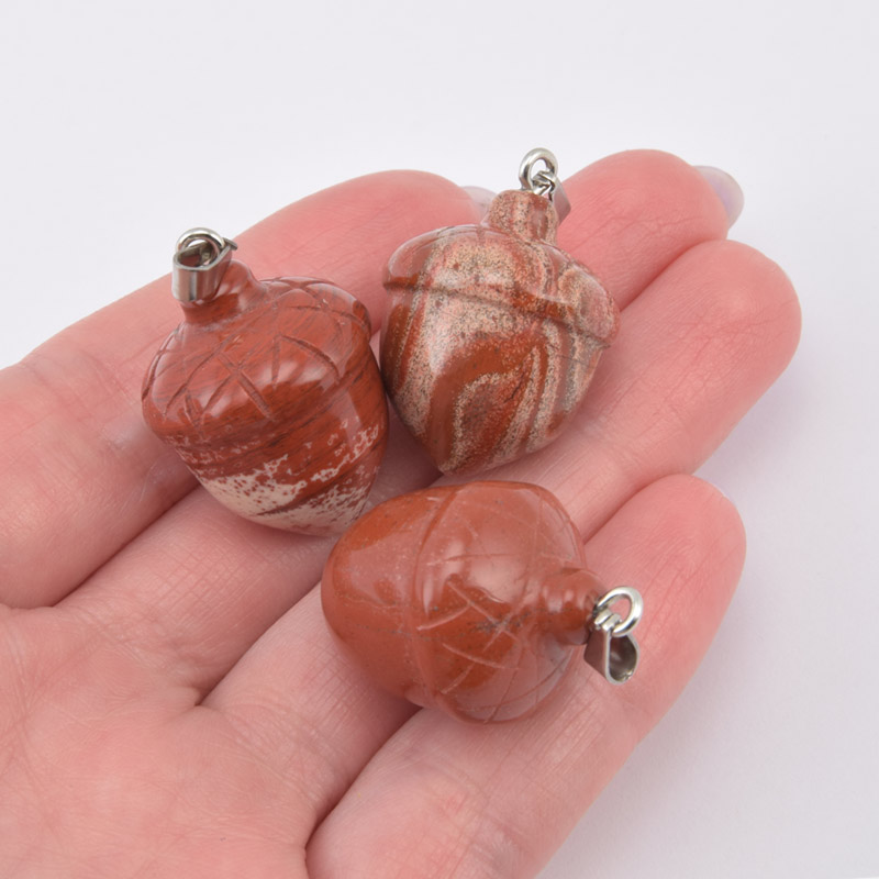 Підвіски відрізняються одна від одної забарвленням.Підвіска Жолудь, Натур. камінь Яшма червона, 25х19 мм (POD-058593) / 1 штPOD-058593165.00₴ / шт -