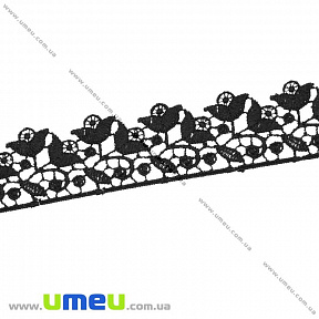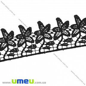 Мереживо плетене Квіти, 34 мм, Чорне (LEN-011943)
