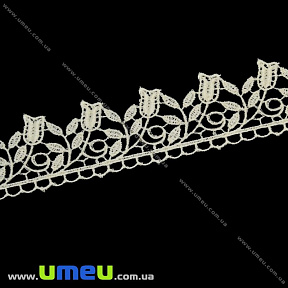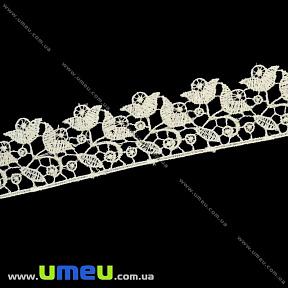 Мереживо плетене Квіти, 34 мм, Кремове (LEN-011942)