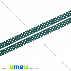 В мотку приблизно 22 м.Репсова стрічка в горошок, 10 мм, Зелена темна (LEN-016660) / 1 мLEN-016660 Кратно 0.5 едДаний товар можна купити