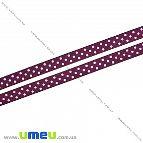 В мотку приблизно 22 м.Репсова стрічка в горошок, 10 мм, Бордова (LEN-022427) / 1 мLEN-022427 Кратно 0.5 едДаний товар можна купити