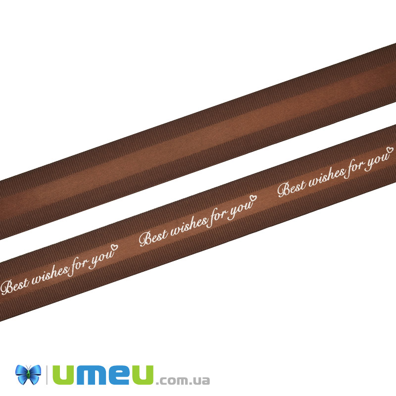 Репсова стрічка Best wishes for you, 25 мм, Коричнева (LEN-048586)