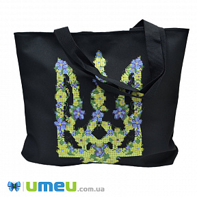Сумка з принтом під вишивку, Тризуб з квітами, Чорна (SXM-044492)