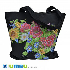 Сумка з принтом під вишивку, Квіти, Чорна (SXM-044489)