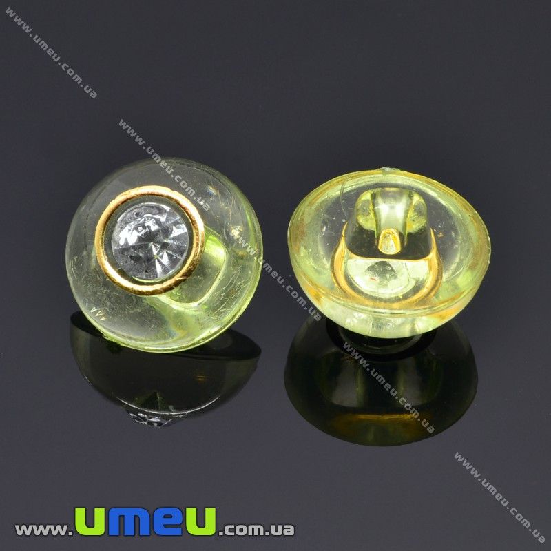 Гудзик пластиковий на ніжці Круглий зі стразами, 13 мм, Салатовий (PUG-012894) /