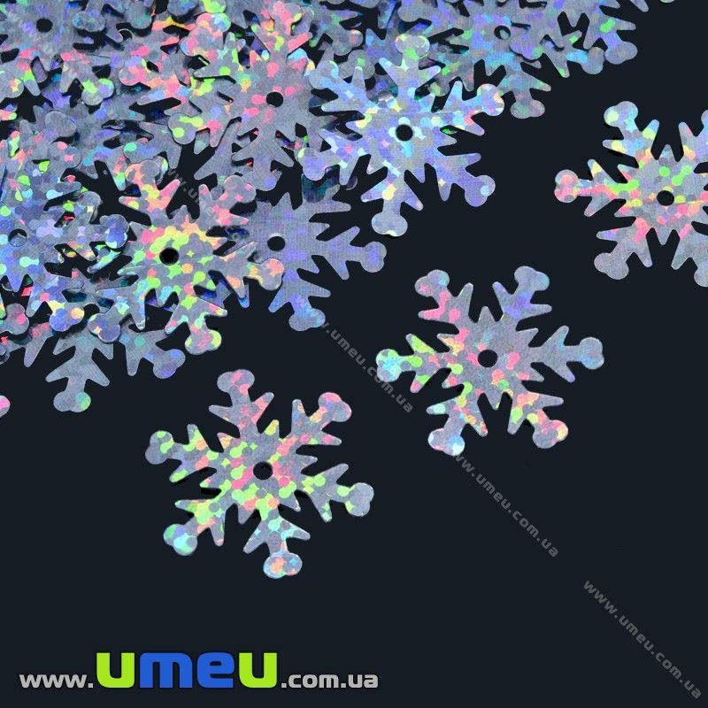 Паєтки Китай Сніжинки, 20 мм, Сріблясті АВ (PAI-013176) / 1 уп (5 г)